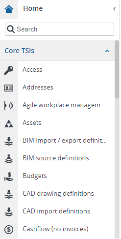 Aufgeklappt und fixiert: Dies ist der Standardmodus. In diesem Modus ist der Navigationsbereich immer auf derselben Ebene, wie der Arbeitsbereich sichtbar. Er ist fixiert und alle TSIs können im Arbeitsbereich geöffnet werden. Sie können den Navigationsbereich ausblenden, indem Sie auf die Schaltfläche