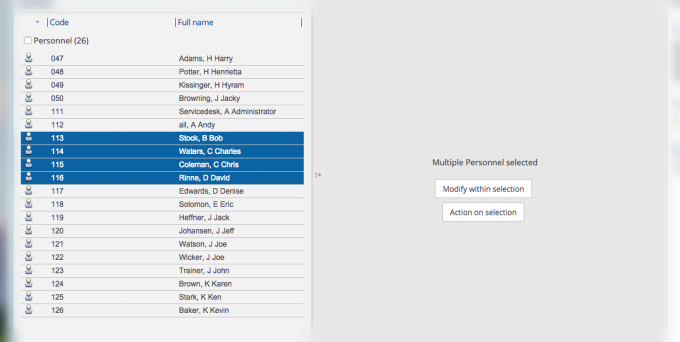 1. Wählen Sie die Elemente aus, für die Sie den Feldwert ändern möchten. Beispielsweise ist das ausgewählte Personal in eine andere Abteilung gewechselt und Sie müssen daher die Felder Abteilung und Arbeitsadresse dieser Personen ändern.