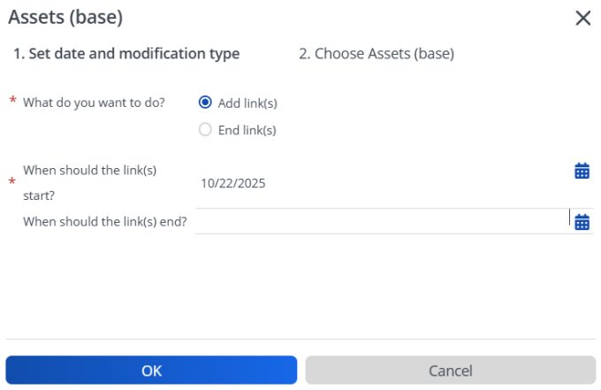 Each asset can be linked to one or more standard activity definitions for a specific period. You can specify a start date and an optional end date for each link