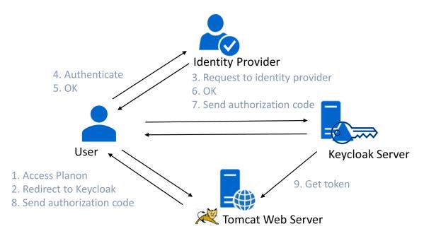 Keycloak is a tool for identity and access management and can be used in front of the Planon application to handle authentication instead of using a standard Planon login.