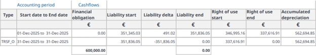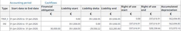 | On the other hand, even open for modification, fields that are related to the calculation of the lease liability should not be modified before the Transferred to lease is activated. Some example of the fields related to calculation: Amount, Reasonably certain to be applied, New rent at renewal, Guaranteed residual value, Purchase price. If they are modified, the consequent remeasurement will be booked without any Financial event registration to identify which modification have been performed. It’s then recommended to activate the ‘transferred to lease’ with the exact lease payments and lease term that has been transferred, then perform any lease modification that will be registered properly. |