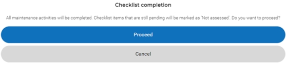 16. Click Proceed if you want to complete the maintenance activity /-ies although some checklist items are not set to Done.
