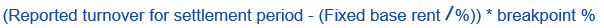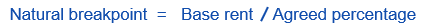 A natural breakpoint is used to determine the threshold at which, in addition to the base rent, turnover rent is calculated. This breakpoint is established by dividing the base rent for a given settlement period by an agreed percentage. Once the lessee's turnover exceeds this breakpoint, a percentage of the excess turnover is owed as turnover rent. With a natural breakpoint, the lessee always pays the fixed base rent. When turnover exceeds the calculated breakpoint, the lessee pays the agreed percentage on the excess turnover as turnover rent. The natural breakpoint percentage is registered on the turnover group.