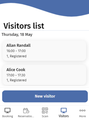 The Workplace solution includes a Visitors module that enables you to register your visitors and to view already scheduled visitors.