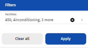 The Filters page is displayed along with the selected facilities in the Facilities option.