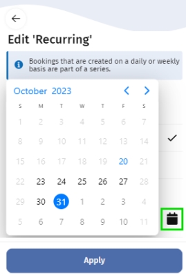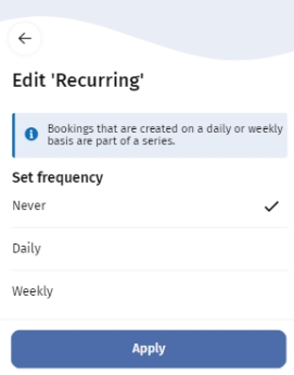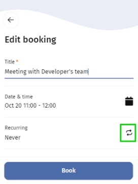 3. To make a recurrent booking, click the icon with the 'make recurring' symbol.