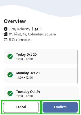 8. Click Confirm to finalize the booking or Cancel to abort.