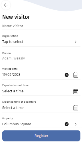 In the Workplace solution > Visitors module, you can register your visitor(s).