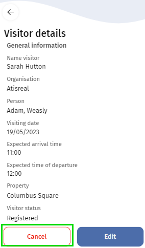 If you cancel, you are redirected to the Start page and you get a confirmation of the cancellation. The visitor is removed from the Visitors list.