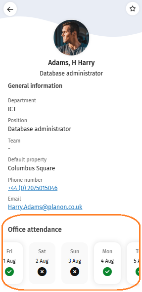 The Workplace solution can help you find information on a colleague's office attendance, by displaying their upcoming space or workspace reservations.
